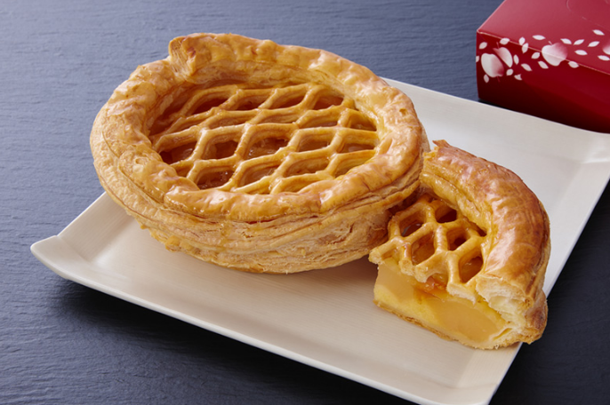 パイ生地の中に、青森県産の紅玉リンゴがたっぷりと入っており、りんごのしゃきしゃきした食感と程よい酸味と温かみを感じる優しい甘さはお子様からご年配の方まで幅広く喜ばれる味わいです。